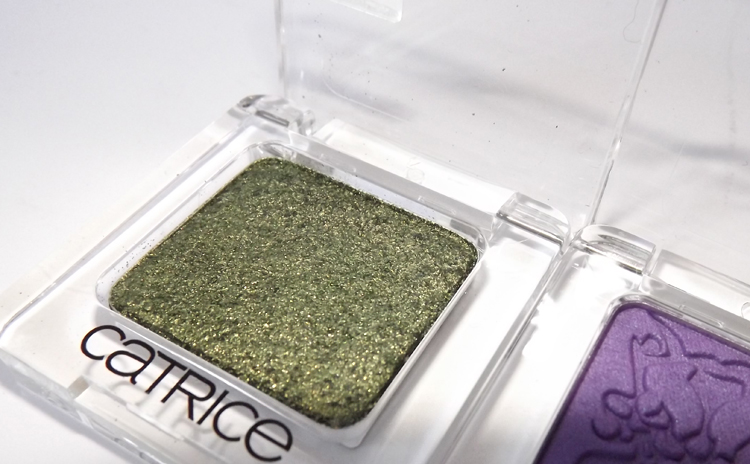 Ce fard est le 640 Don’t Touch My Mosserati!, un très beau vert-doré qui ressort très mal sur la photo. Il est pailleté, donc forcément un peu chuteux, mais ce qu’il est beau. Un chocapic à celle qui trouve la marque. ;D