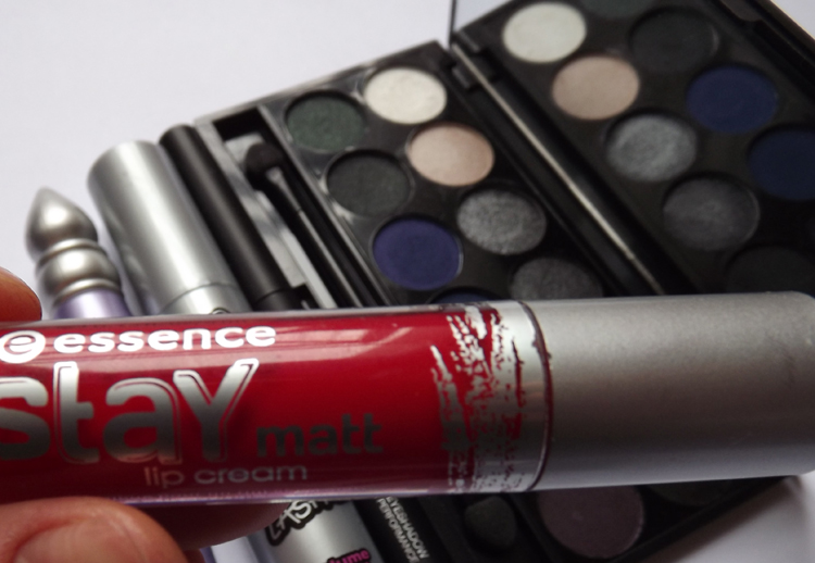 Vu que le thème était aus lèvres rouges, je me suis dit que j’allais pas y aller avec le dos de la cuiller, et j’ai cherché le rouge le plus franc que j’ai. Je ne suis pas très rouge, je préfère les bordeaux et les prune, mais j’avais pris deux lip cream mats de chez Essence, dont un rouge franc.