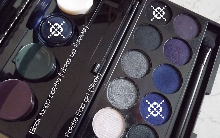 J’ai utilisé l’aqua cream bleu foncé de la palette black tango que j’ai eue en ventes privées. J’ai utilisé le fard bleu de Sleek par dessus, et ensuite un peu de noir pour le contour.