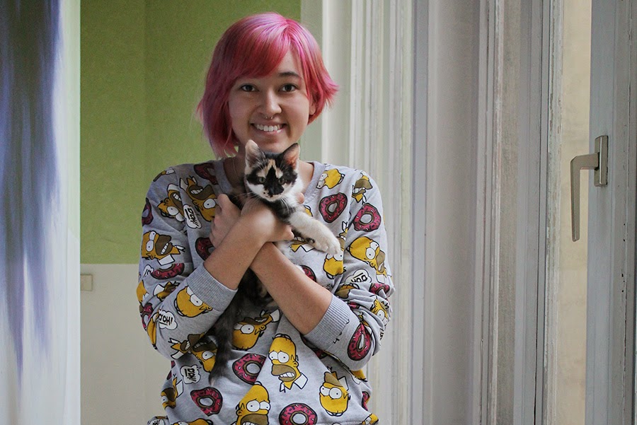 Je vous présente Crapule, le chaton d’une de mes colocs. On l’a depuis un mois et on l’a déjà toutes les trois adoptée, elle met plein de vie chez nous. Elle court partout, mange tout ce qui traîne, un petit chaton rebelle quoi (bon elle fait des bêtises aussi, je peux pas dire que j’ai été ravie qu’elle casse mon casque en le bouffant hier). 🙂